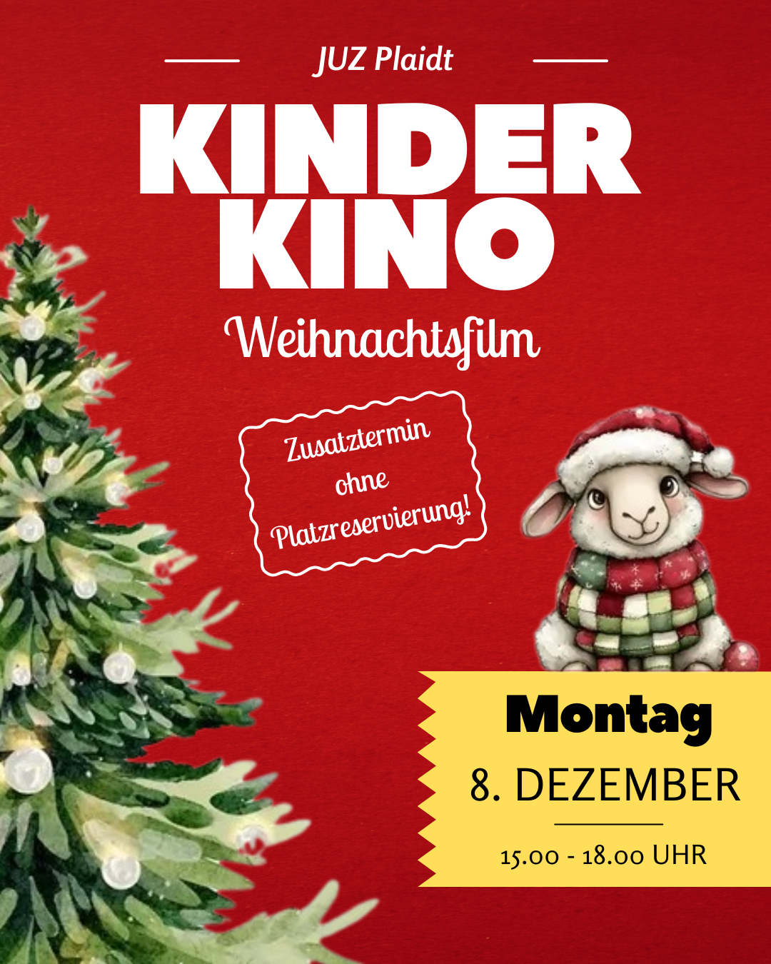 Für alle, die am 6. Dezember nicht teilnehmen können, bieten wir einen Zusatztermin am Montag, den 8. Dezember im Rahmen des monatlichen Kinderkinos an. Das