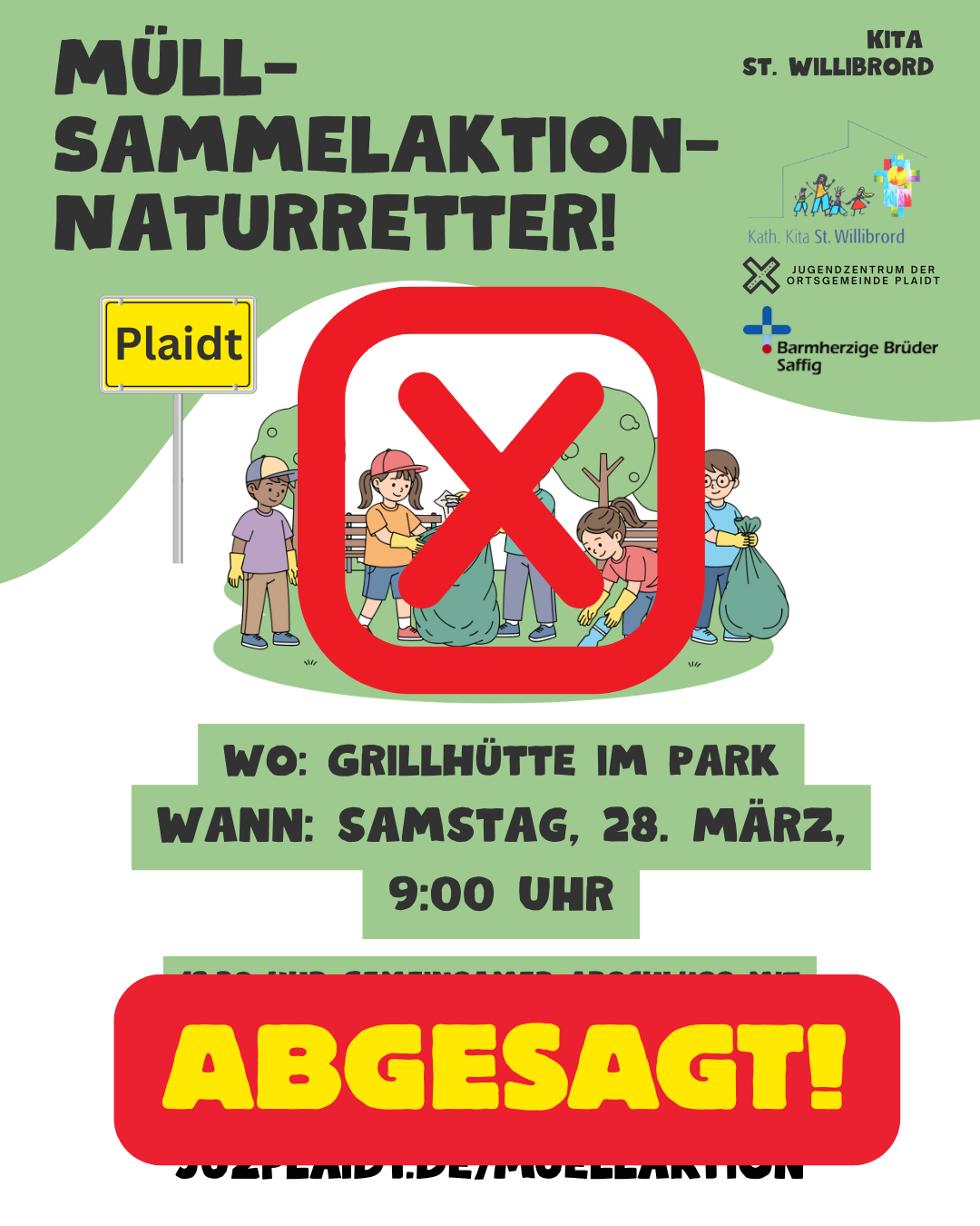 Die Kita-Sozialarbeit der Kita St. Willibrord Plaidt und das Jugendzentrum der Ortsgemeinde Plaidt veranstalten eine Müllsammelaktion im Plaidter Park: Samstag, 28. März 2026 9.00 Uhr –