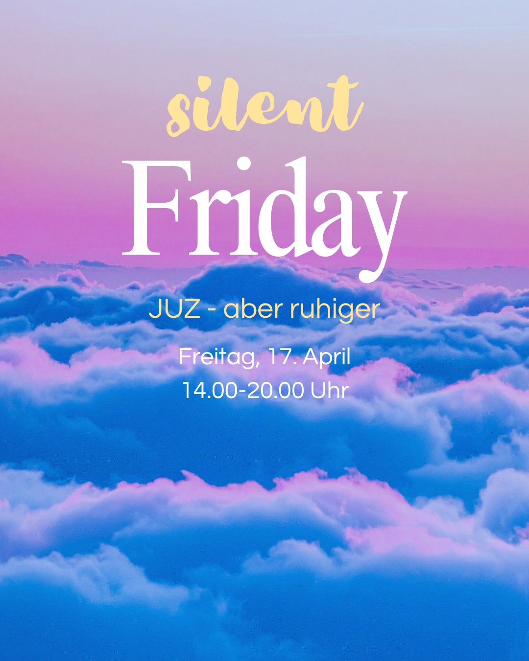 Einmal im Monat gibt es an einem Freitag eine zusätzliche Öffnungszeit von 14-20 Uhr, jedoch geht es an diesem speziellen Tag ruhiger zu als ihr sonst vom JUZ gewohnt seid: