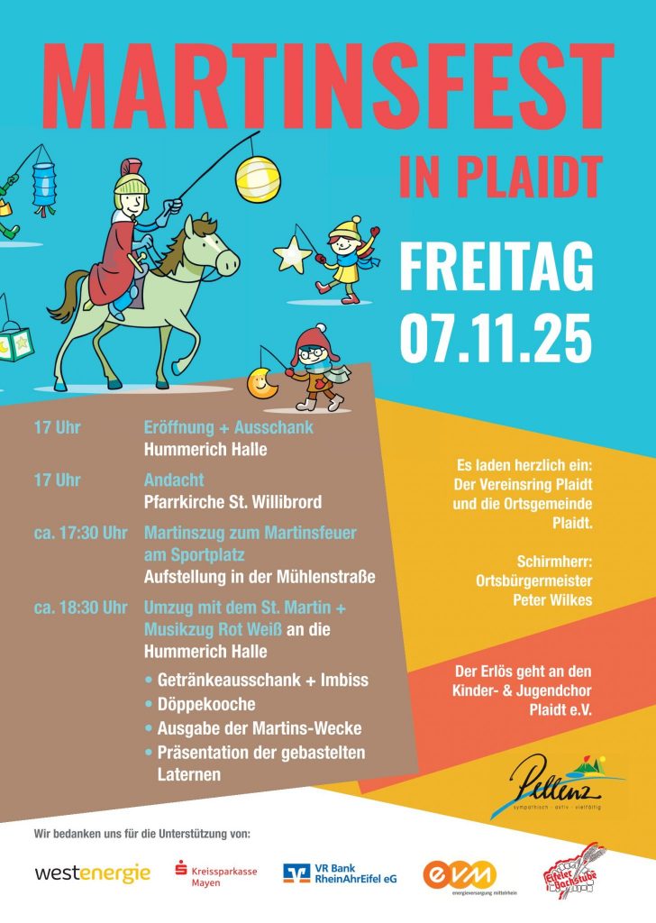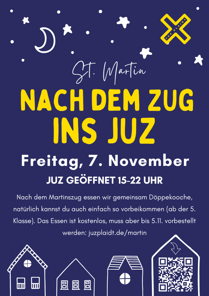 “Nach dem Zug ins JUZ!” Am Freitag, den 7. November findet der Martinsumzug in Plaidt statt. Auf euren Wunsch hin